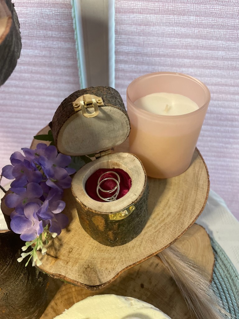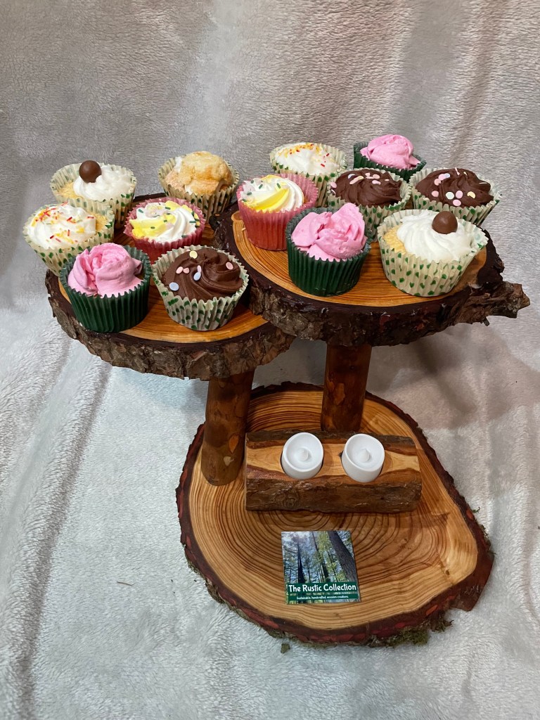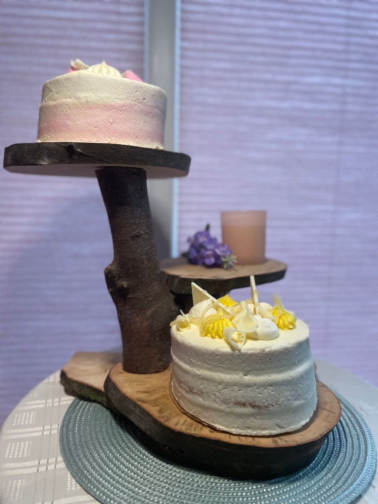 Rentals: Elevate your wedding with our handcrafted rustic rentalsโcake stands, signage, and more! These unique pieces add a natural charm to your celebration while remaining an eco-conscious choice.