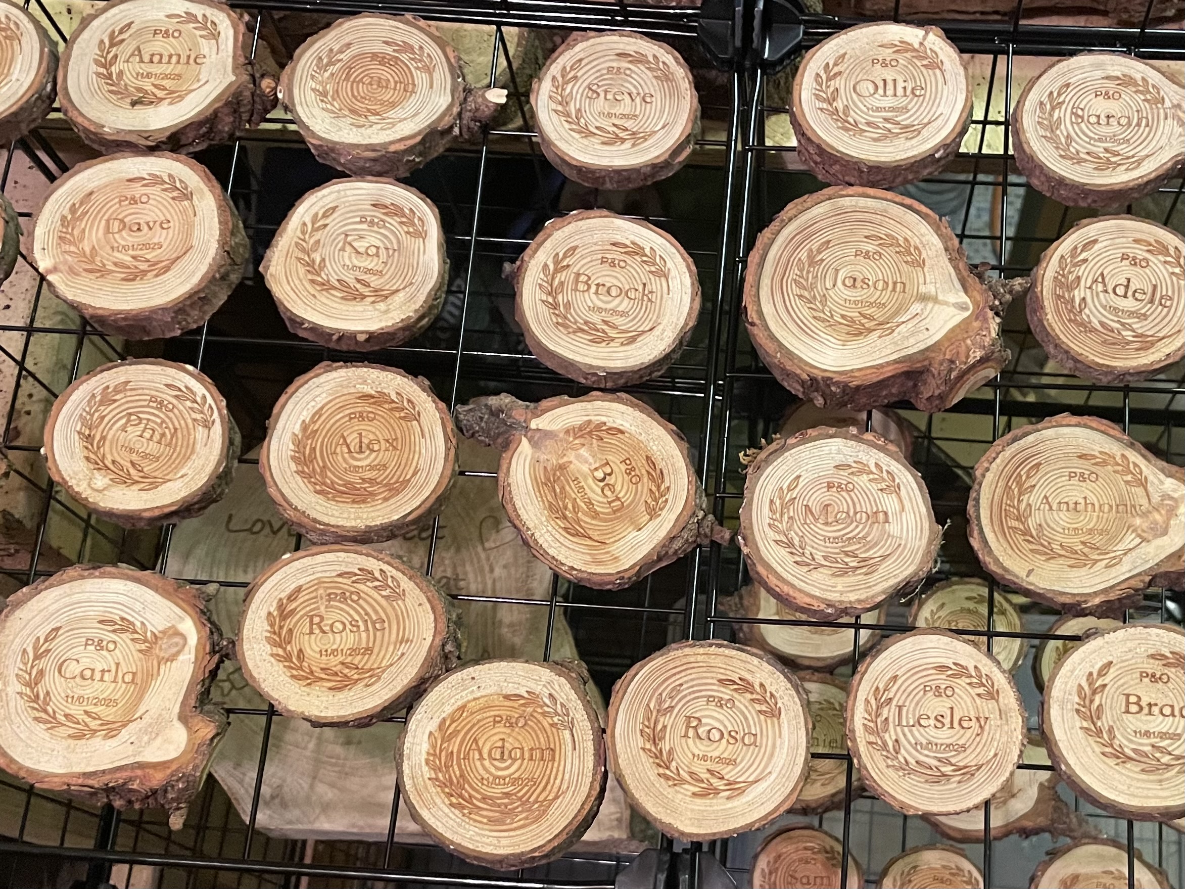 Personalised Engraved Gifts: Looking for a special touch? Our engraved wooden keepsakes and wedding favours are perfect as unique gifts, made to order with precision and care.