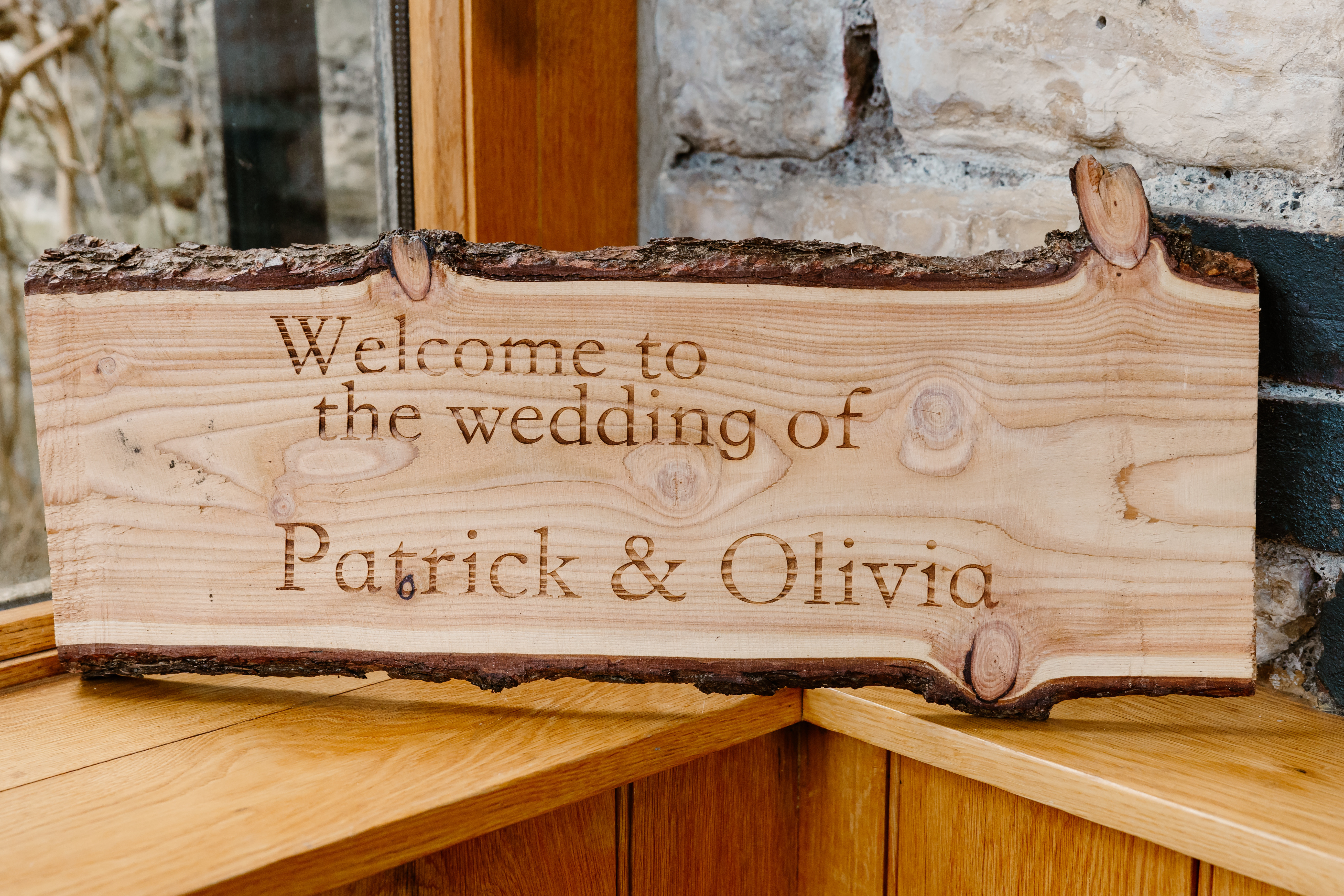A beautifully rustic celebration at the stunning Priston Mill, where every detail was personalised to perfection. From engraved wedding favours for each guest to a bespoke sweet table stand and a handcrafted welcome sign and wedding ring box, our creations added a meaningful touch to their special day.