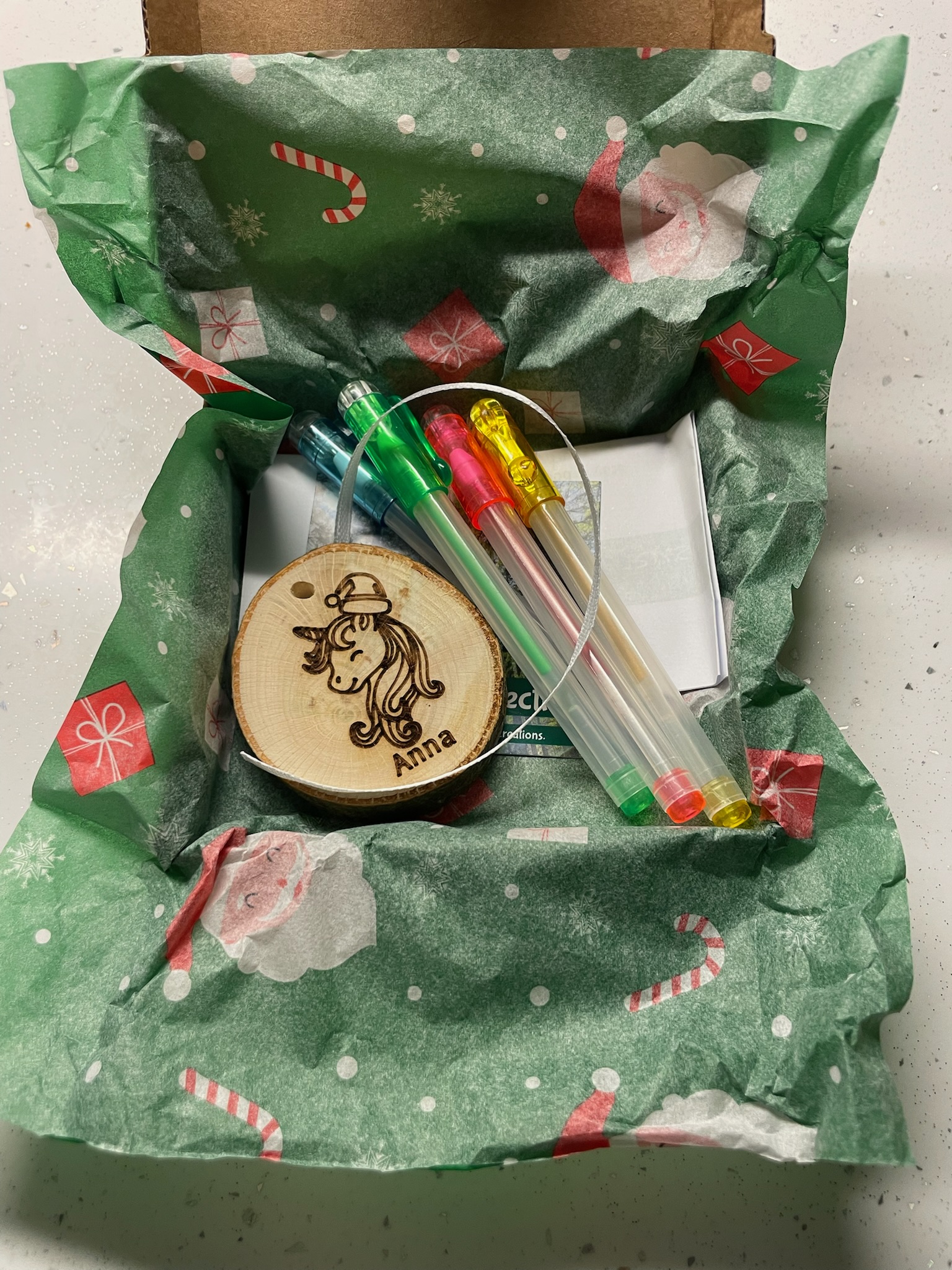 From there, the process continues in our workshop, where each item is crafted with care. With help from our precision laser cutter, we transform raw wood into beautifully engraved keepsakes, cake stands, welcome signs, and more. Every step, from sanding and engraving to finishing and packaging, is done with attention to detail to create pieces that are both meaningful and long-lasting.